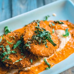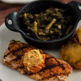 Best grits I've ever had. They came with the Fried Green Tomatoes. Keep in mind that I am coming from Southern California, so I do not have a large sample size. Man, I could eat those every day and be very happy. Server was friendly. Got there at early Happy Hour on a Tuesday. Wasn't crowded. It started filling in as we left. I went with the Smothered Chicken. Tasty. Would come back again when in the area.
